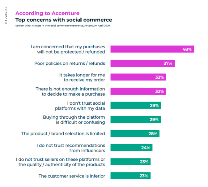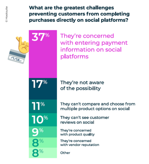 A differenza di quanto dichiarato dai consumatori, il 37% dei marketer intervistati afferma che la principale preoccupazione degli utenti riguardava la necessità di inserire le informazioni di pagamento sulle principali piattaforme social.