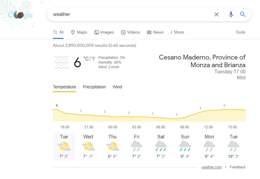 Il secondo step consiste nell’assegnare un contesto alla query. Per fare ciò, ove possibile, il motore attinge ad altre informazioni rilevanti che ha sull’utente. Ciò avviene, ad esempio, quando digitiamo “meteo” come query di ricerca: Google sa già al meteo di quale città mi sto riferendo.