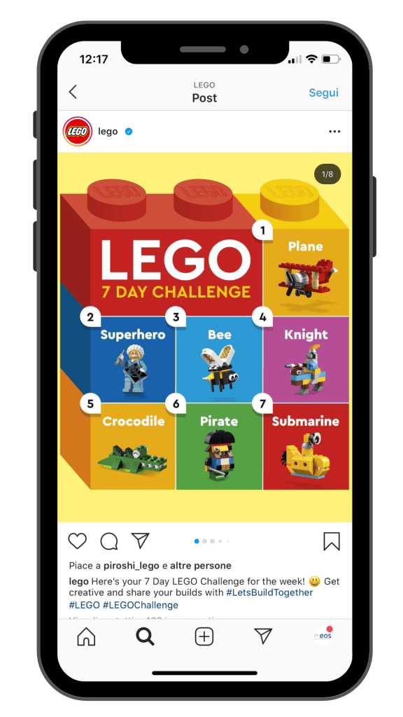La challenge di Lego lanciata su Instagram per intrattenere i più piccoli.