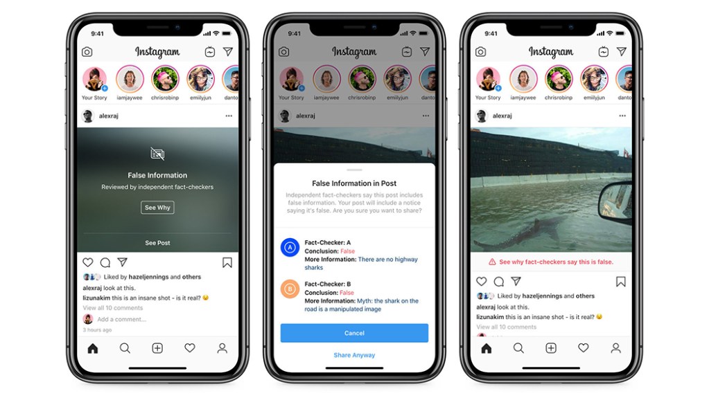 Come Instagram avvisa gli utenti a informarsi correttamente.