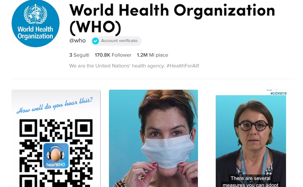 L'account ufficiale dell’OMS su TikTok ha l’obiettivo di combattere le fake news e fare buona informazione sul Covid-19.