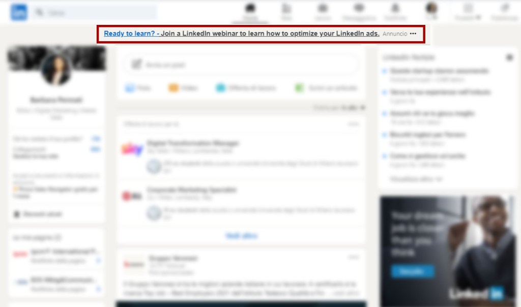 Come tutti gli altri social, anche LinkedIn permette di fare annunci pubblicitari a pagamento.