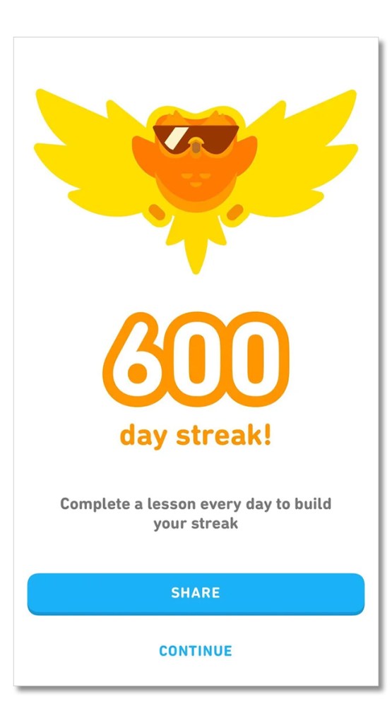 Sicuramente uno dei progressi più celebrati e che molti utenti si impegnano a non perdere è relativo ai giorni di slancio, ovvero il numero di giorni consecutivi in cui viene completata almeno una lezione. Sebbene si possa leggermente barare, in quanto ogni utente ha a disposizione due “congelazioni dello slancio” gratuite, grazie alle quali è possibile saltare due giorni di lezione pur mantenendo lo slancio (che viene appunto congelato), rimane vero che, terminate le congelazioni, lo slancio viene perso e si ritorna a zero.