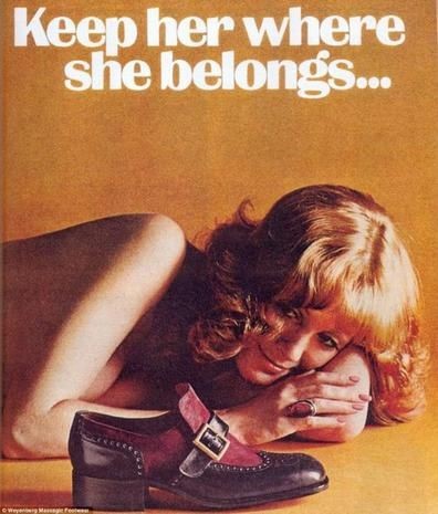Nel 1974, Weyenberg Massagic Shoes pubblica su Playboy Magazine una pubblicità che raffigura una donna nuda e con sguardo ammiccante sdraiata sul pavimento dietro alla scarpa del brand. L’inserzione è accompagnata dal claim “Keep her where she belongs” ovvero “Tienila al suo posto”, ossia ai piedi di un uomo.