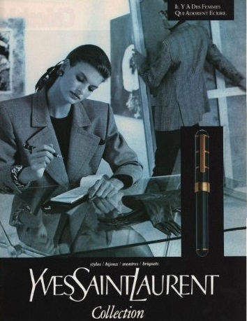 Soltanto verso la fine degli anni Ottanta e l’inizio degli anni Novanta assistiamo ai primi segnali di emancipazione femminile. La donna inizia ad essere rappresentata come una persona autonoma, forte, capace di fare carriera e sessualmente libera, e se ne celebra l’intraprendenza e l’autosufficienza. Ne è un esempio la pubblicità di Yves Saint Laurent, che mostra una donna in ufficio seduta alla scrivania che indossa una giacca elegante, un capo che un tempo veniva utilizzato esclusivamente dagli uomini.