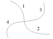 Secondo il principio della continuità di direzione, il nostro sistema visivo tende a evitare bruschi cambiamenti di direzione e interruzioni. Questo spiega il motivo per il quale nella figura sottostante, percepiamo come un’unica linea 1-2 e 3-4, ma non le linee 1-3, 2-3, 1-4, 4-2.
