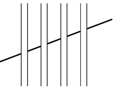 Secondo la legge del destino comune, gli individui tendono a raggruppare all’interno dello stesso insieme gli elementi che si muovono in sincronia, separandoli dal resto. In questo caso, le linee verticali sono percepite in un unico insieme e separata dalla linea obliqua.