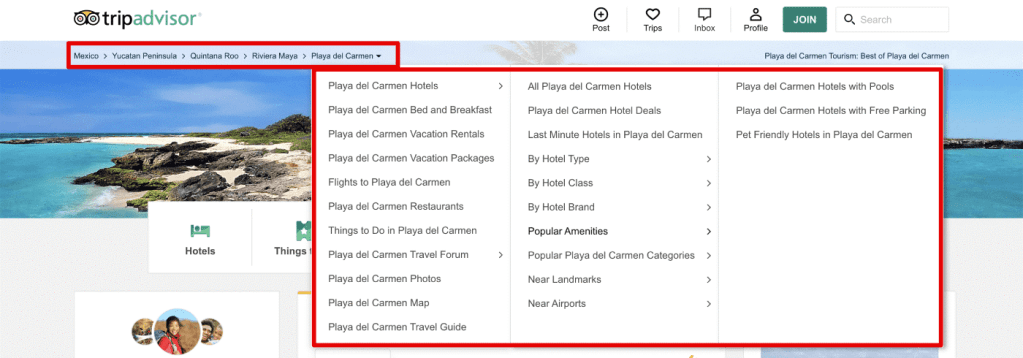 - Per indicare all’istante la posizione di un utente all’interno del sito web, possiamo sfruttare anche le breadcrumbs (briciole di pane). Questo termine indica il “percorso” composto dalle pagine visitate in precedenza da un utente fino ad arrivare alla pagina attuale. Solitamente le breadcrumb sono posizionate nella parte superiore della pagina, al di sotto delle barre dei titoli o degli header e hanno una struttura simile a quella nella foto seguente.