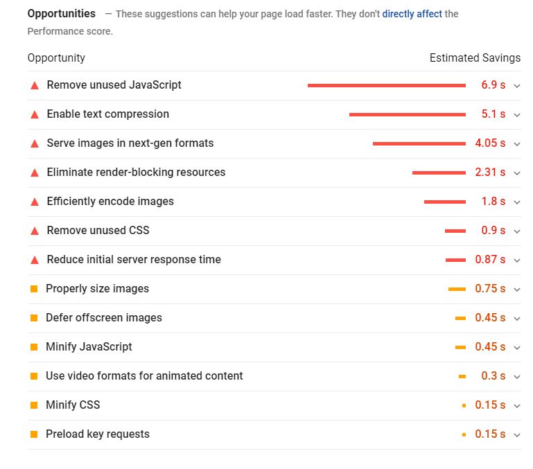Oltre a calcolare il punteggio, PageSpeed Insights mostrerà anche consigli utili per migliorare le performance e risolvere eventuali problematiche.
