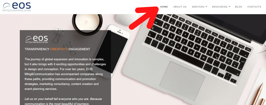 - La voce home deve sempre essere presente per consentire all’utente di tornare alla pagina iniziale. Per tornare facilmente alla homepage puoi anche prevedere la possibilità di cliccare sul logo del sito;
