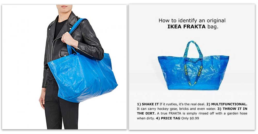 Ikea è, invece, un ottimo esempio di marketing responsivo. Nel 2017, l’azienda di moda Balenciaga ha lanciato una borsa blu in cui molti hanno riconosciuto la famosissima shopping bag Frakta di Ikea. La borsa Balenciaga, venduta a 2.145 dollari, ha generato da subito dibattiti, commenti e articoli come quello del New York Post intitolato “Balenciaga’s Ikea-Bag Knockoff Is Even Dumber Than It Looks”.