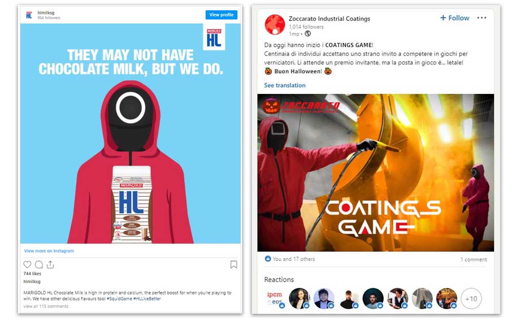Squid Game, la serie sudcoreana che ha infranto ogni record, diventando la serie più vista di sempre su Netflix. Moltissimi brand non hanno perso tempo a cavalcare l’onda del fenomeno Squid Game, ideando pubblicità e post social sfruttando alcuni elementi iconici e simbolici della serie. Eccone alcuni di seguito, incluso un’azienda del B2B specializzata in vernici industriali, che dimostra che il Real Time Marketing non conosce confini.