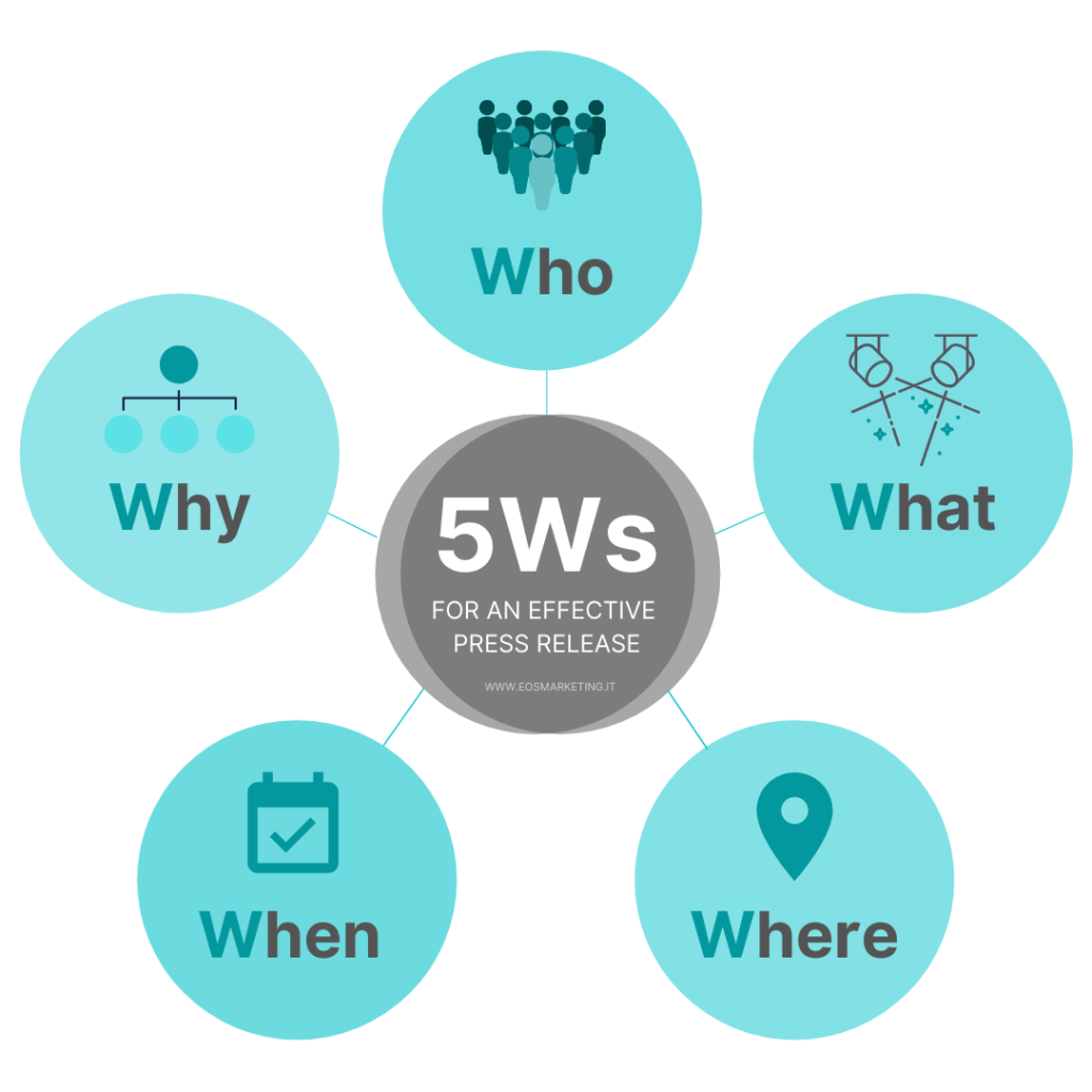Uno degli strumenti più importanti per comunicare un evento è sicuramente il comunicato stampa. Un buon comunicato stampa deve rispondere alla regola delle 5 W: Who, What, Where, When, Why. Deve quindi spiegare chi siamo, che tipo di evento stiamo organizzando e perché, dove e quando si terrà. Per un comunicato ancora più completo possiamo aggiungere un’ulteriore domanda, how, spiegando quindi come si svolgerà l’evento, le sue varie fasi, le attività previste.