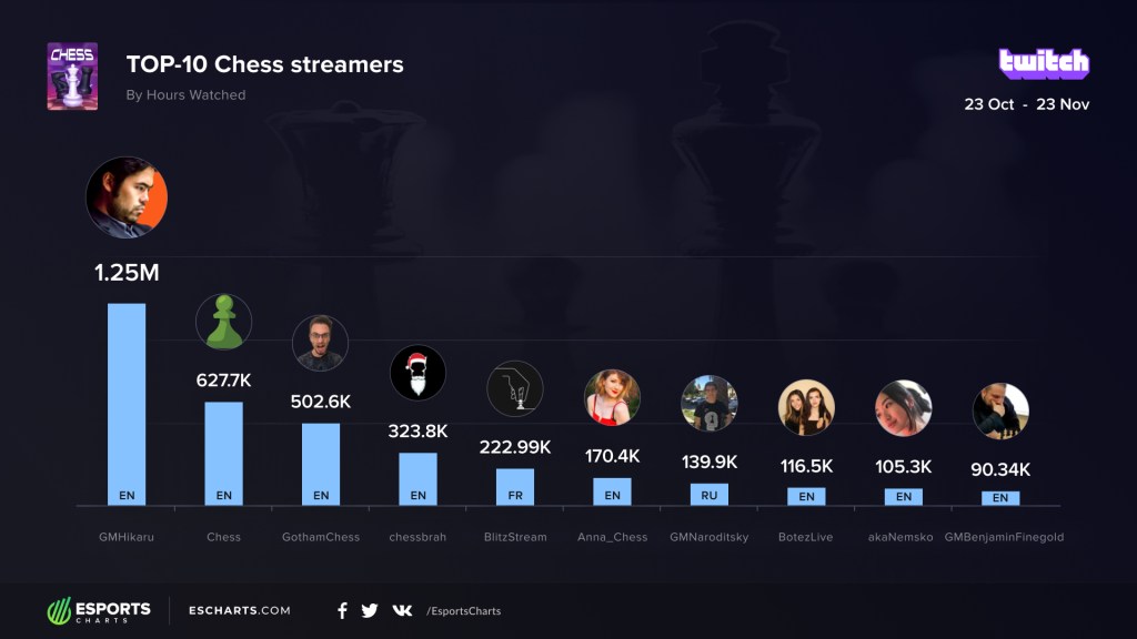 I 10 migliori giocatori di scacchi di Twitch.