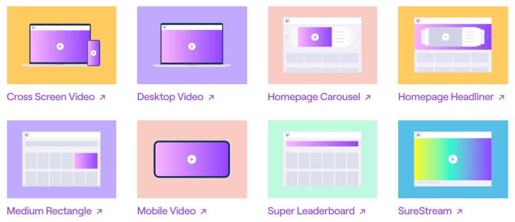 - Desktop Video, Mobile Video e Cross Screen Video: pubblicità video trasmesse durante le dirette e visibili da mobile e pc;