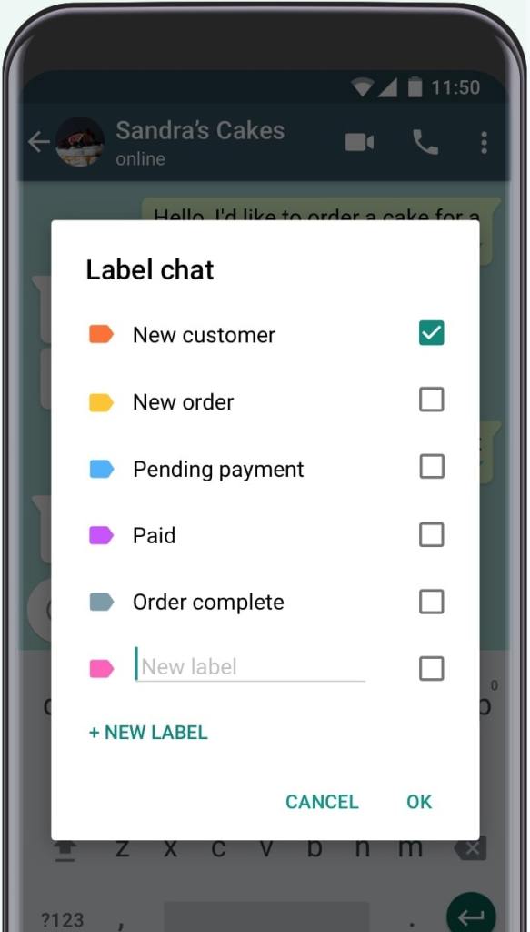 WhatsApp Business consente di organizzare e gestire le chat creando etichette con colori e nomi diversi per differenziare le chat di clienti nuovi, abituali, che hanno effettuato un ordine o il cui ordine è ancora in sospeso. Le etichette ti aiuteranno a tenere traccia delle abitudini di acquisto dei clienti e individuare più facilmente chat e messaggi.