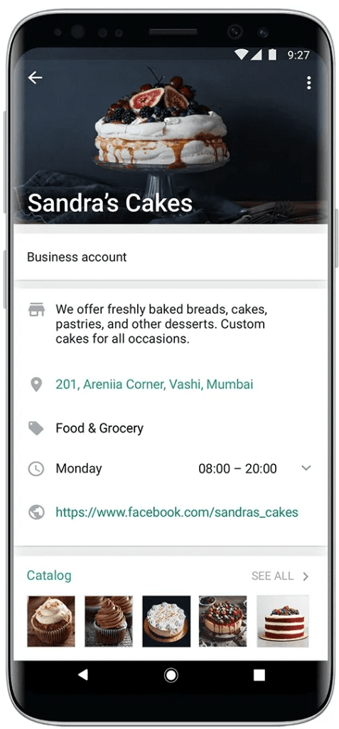 WhatsApp Business offre ai brand uno spazio in cui mostrare agli utenti il proprio catalogo di prodotti e/o servizi. Si tratta di una sorte di vetrina in cui presentare gli articoli in vendita, con tanto di descrizione, foto e prezzo. In questa sezione, l’utente potrà cercare i prodotti o i servizi da acquistare, contattando l’azienda via WhatsApp o venendo indirizzato esternamente al sito e-commerce dell’azienda.